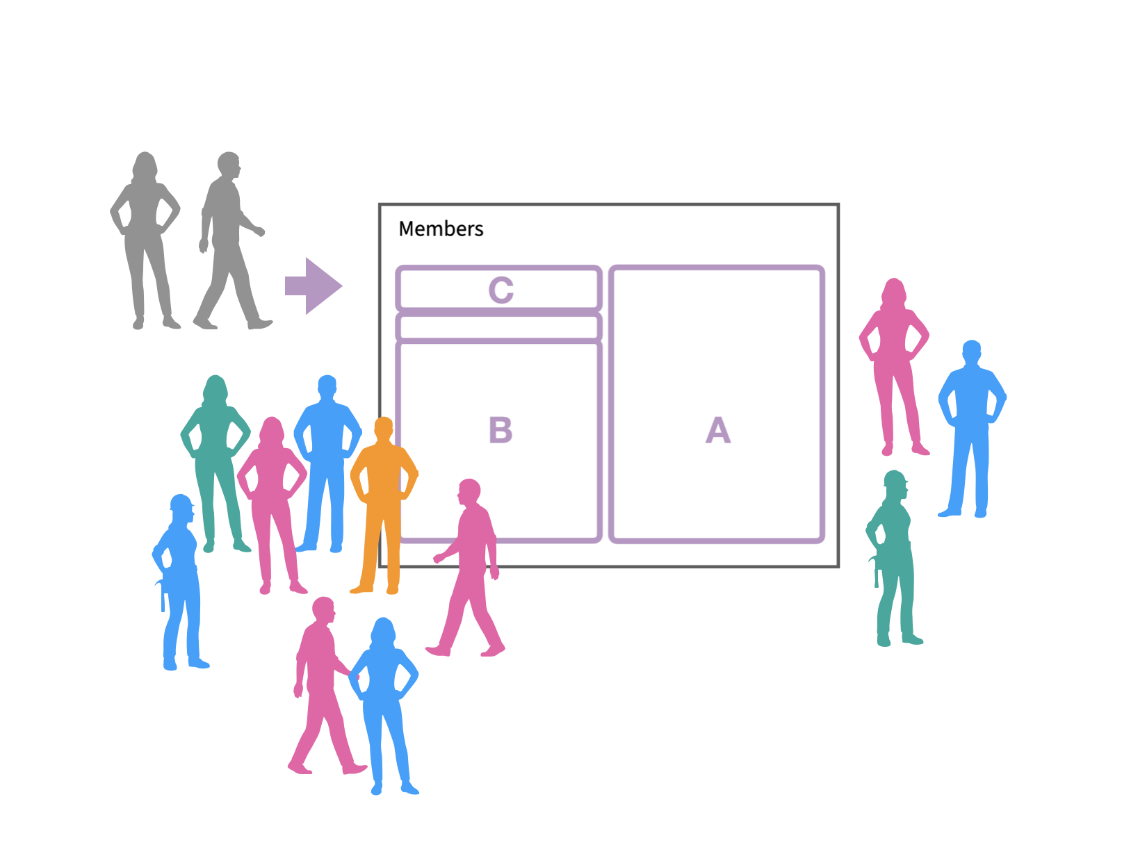 När du vill hantera medlemmar och deltagare i ett workspace, (d v s bruttolista över byråteam och kundteam m fl, för en kund e d).