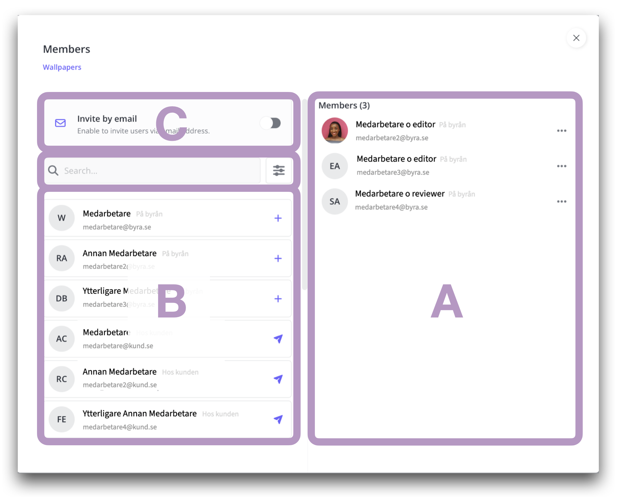 Hitta motsvarande modal för att hantera medlemmar i ett workspace