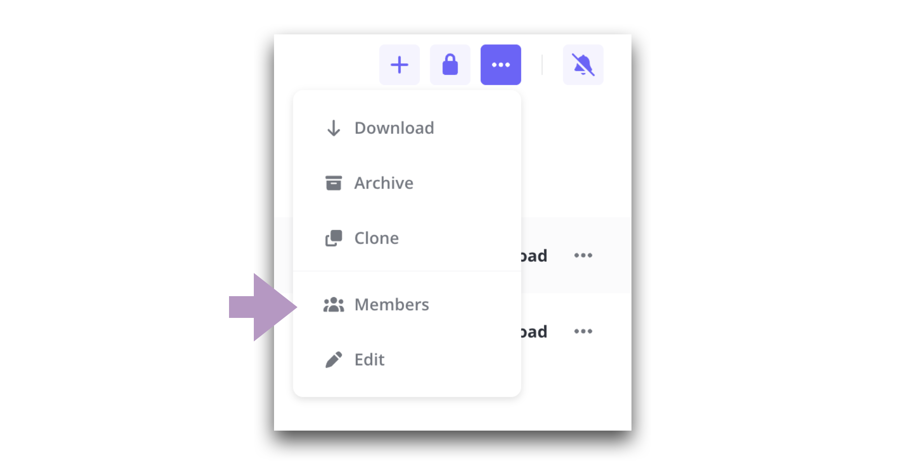 Projektsidans verktygslåda är förenklad och du hittar till projektdeltagar-modalen under trepunktsmenyn – Members.